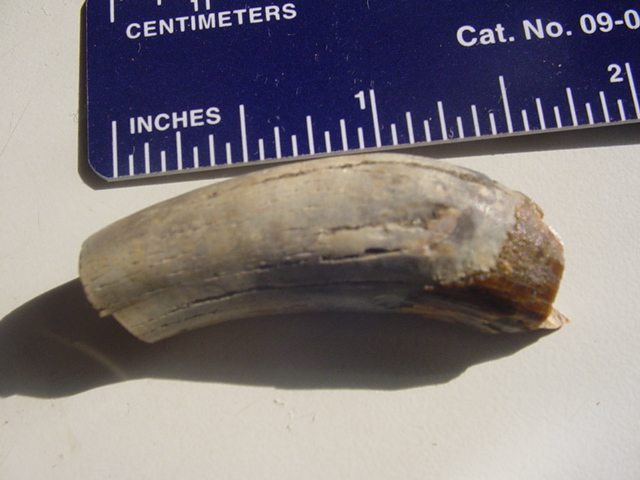 Description: Tooth of a basal odontocete (early toothed whale), possibly a squalodont whale - this is probably from the late oligocene